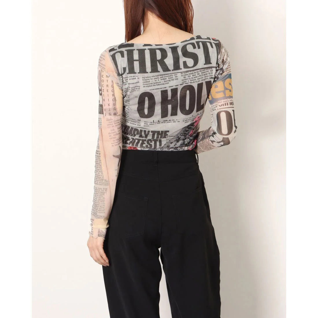 The Desigual Body Any News is a true statement piece that looks like you're wearing an artistic collage. The body-hugging bodysuit's entire surface is covered with a patchwork-like pattern: newspaper article fragments, handwritten inscriptions, checkered fields, and rich floral motifs blend together in earth tones, grays, browns, with a touch of blue and burgundy contrast.
