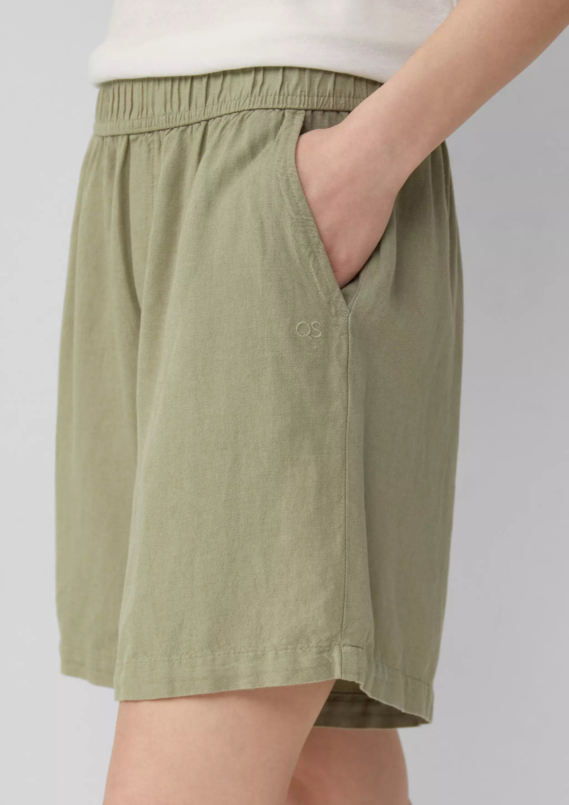 Q/S designed by s.Oliver Women's Linen-Blend Shorts - Elastic Waistband - Olive Green